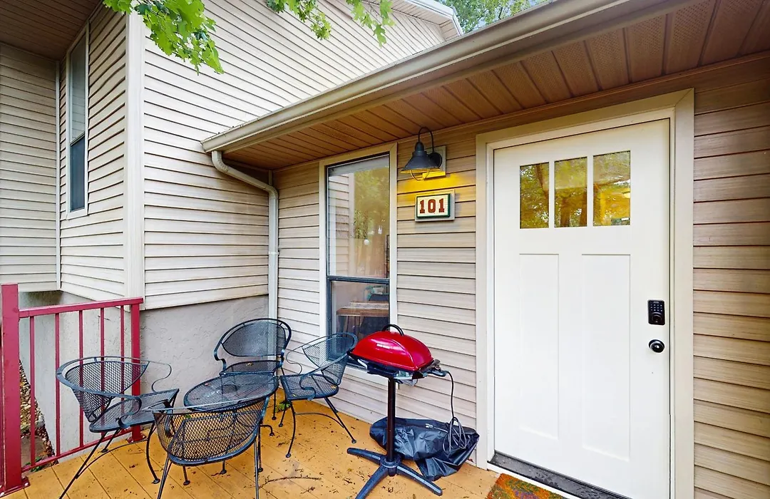 With self-catering amenities like a full kitchen, the accommodation also boasts an outdoor dining area where guests can relax and indulge in their meals.